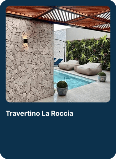 Travertino com textura marcada e visual natural, unindo rusticidade e elegância em ambientes sofisticados